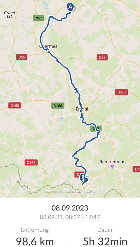 Tag 5 (8.9.) Einaux – Bayon – Charmes – Epinal – Plombières / 99 km